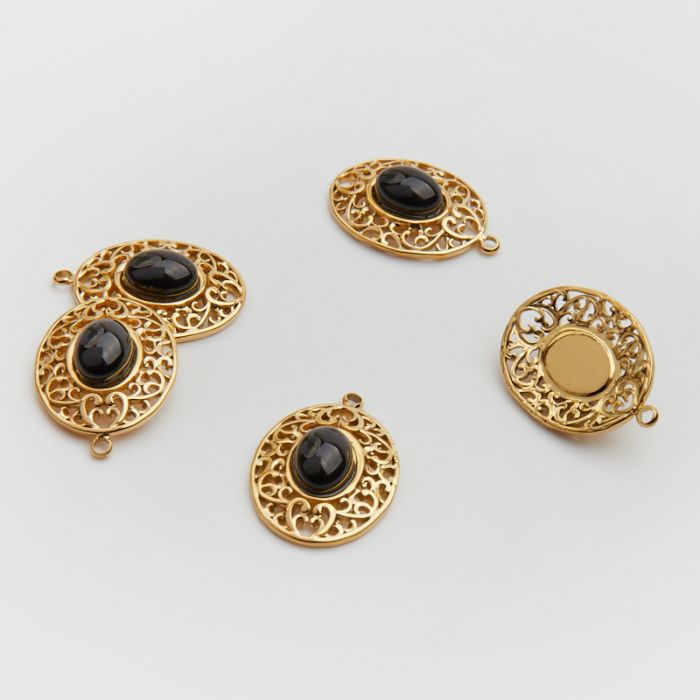 Zawieszka ze stali chirurgicznej ażurowy owal z onyksem w kolorze złotym 21mm PVD