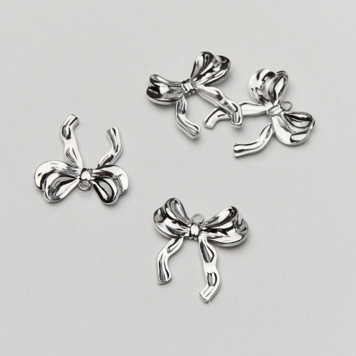 Zawieszka ze stali chirurgicznej bogata kokardka w kolorze srebrnym 24mmTo dopracowany produkt ze stali chirurgicznej 316L, który łączy praktyczność z estetycznym wyglądem. Stal chirurgiczna 316L jest ceniona za odporność na korozję i estetyczny wygląd w codziennym użytkowaniu.Zawieszka ze stali chirurgicznej 316L to dekoracyjny element, który nadaje biżuterii charakteru i pozwala tworzyć spersonalizowane projekty. Świetnie sprawdza się w naszyjnikach, bransoletkach, kolczykach oraz drobnych charmsach.Forma lub motyw