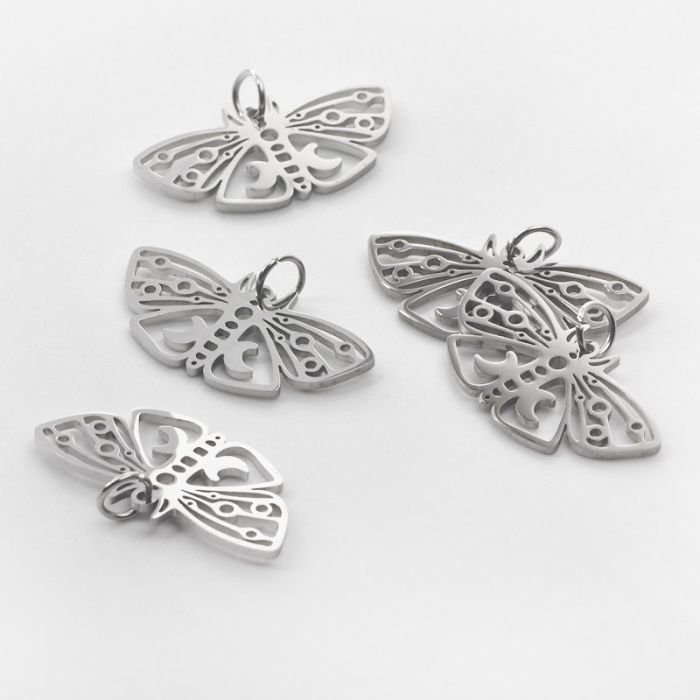 Zawieszka ze stali chirurgicznej ćma w kolorze srebrnym 8mm