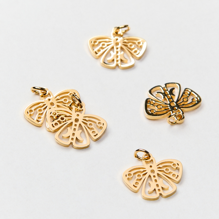 Zawieszka ze stali chirurgicznej ćma w kolorze złotym 11mm PVDTo trwały element biżuterii lub półfabrykat jubilerski, który dobrze sprawdza się w codziennych realizacjach. Stal chirurgiczna 316L dobrze sprawdza się w biżuterii noszonej na co dzień, ponieważ łączy trwałość z estetycznym wykończeniem. Wykończenie w kolorze złotym uzyskane metodą PVD.Zawieszka ze stali chirurgicznej 316L to dekoracyjny element, który nadaje biżuterii charakteru i pozwala tworzyć spersonalizowane projekty. Świetnie sprawdza się w naszyjnikach, bransoletkach, kolczykach oraz drobnych charmsach.Forma lub motyw