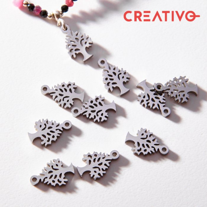 Zawieszka ze stali chirurgicznej drzewko w kolorze srebrnym 13mmTo dopracowany produkt ze stali chirurgicznej 316L, który łączy praktyczność z estetycznym wyglądem. W biżuterii handmade stal chirurgiczna 316L jest ceniona za dobry wygląd, odporność na korozję i wygodę codziennego użytkowania.Zawieszka ze stali chirurgicznej 316L to dekoracyjny element, który nadaje biżuterii charakteru i pozwala tworzyć spersonalizowane projekty. Świetnie sprawdza się w naszyjnikach, bransoletkach, kolczykach oraz drobnych charmsach.Forma lub motyw