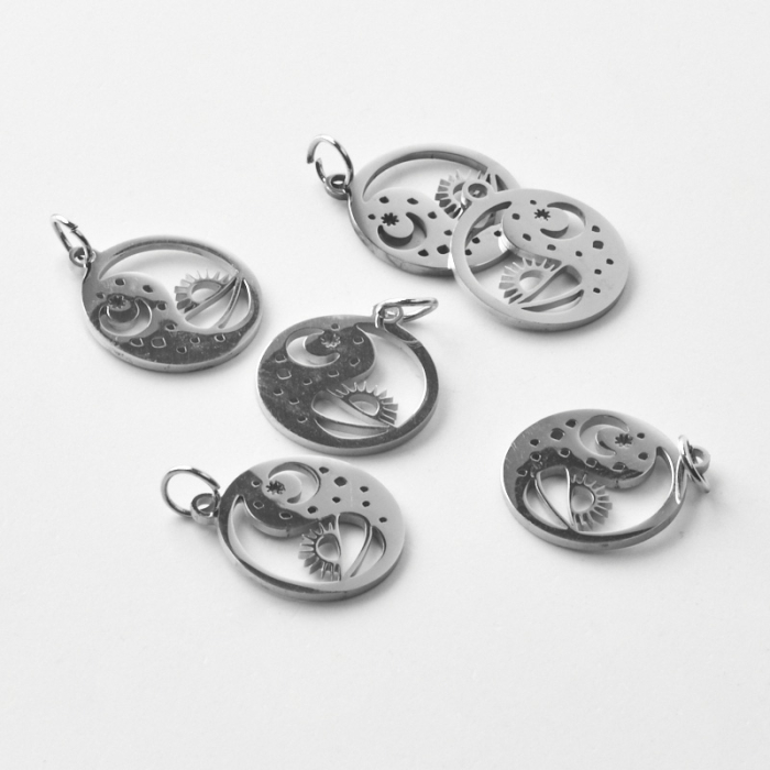 Zawieszka ze stali chirurgicznej dzień i noc w kolorze srebrnym 17mmTo trwały element biżuterii lub półfabrykat jubilerski, który dobrze sprawdza się w codziennych realizacjach. To materiał chętnie wybierany do biżuterii handmade ze względu na trwałość, estetykę i wygodę użytkowania.Zawieszka ze stali szlachetnej to dekoracyjny element, który nadaje biżuterii charakteru i pozwala tworzyć spersonalizowane projekty. Świetnie sprawdza się w naszyjnikach, bransoletkach, kolczykach oraz drobnych charmsach.Forma lub motyw