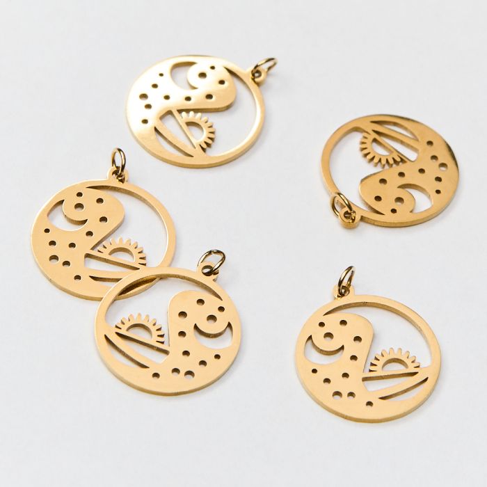 Zawieszka ze stali chirurgicznej dzień i noc w kolorze złotym 17mm PVD