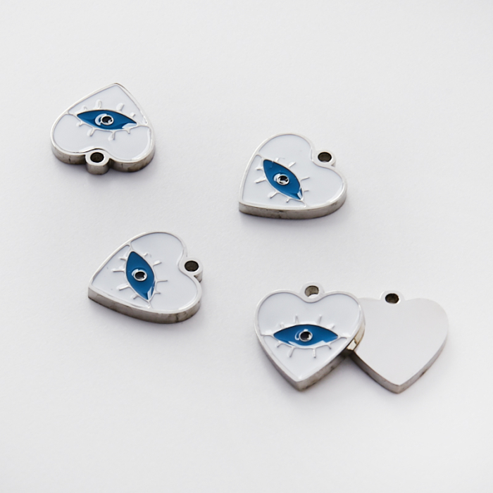 Zawieszka ze stali chirurgicznej emaliowana serce biało niebieskie w kolorze srebrnym 10mmTo trwały element biżuterii lub półfabrykat jubilerski, który dobrze sprawdza się w codziennych realizacjach. Stal chirurgiczna 316L jest ceniona za odporność na korozję i estetyczny wygląd w codziennym użytkowaniu.Zawieszka ze stali chirurgicznej 316L to dekoracyjny element, który nadaje biżuterii charakteru i pozwala tworzyć spersonalizowane projekty. Świetnie sprawdza się w naszyjnikach, bransoletkach, kolczykach oraz drobnych charmsach.Forma lub motyw