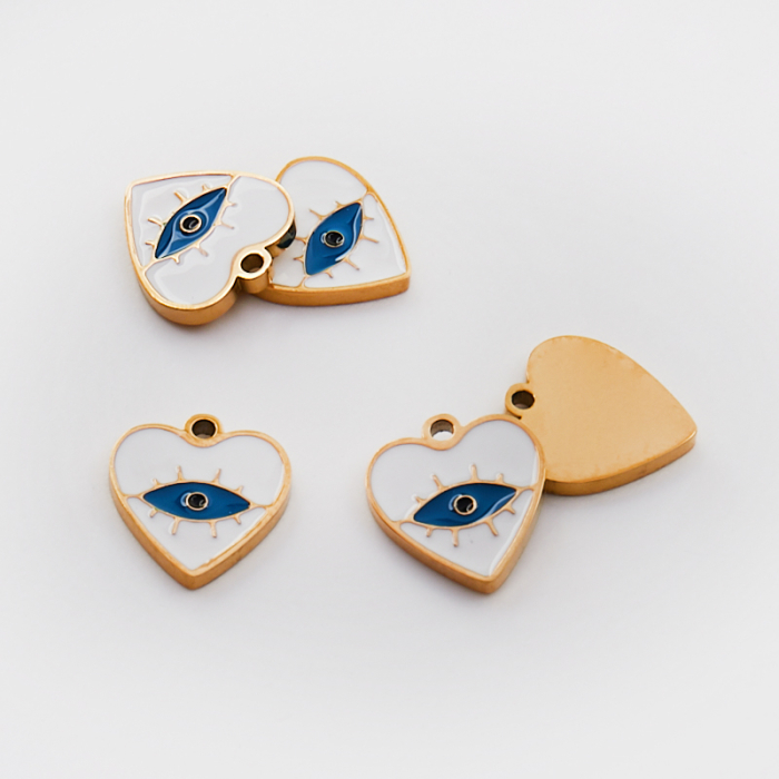 Zawieszka ze stali chirurgicznej emaliowana serce biało niebieskie w kolorze złotym 10mm PVD