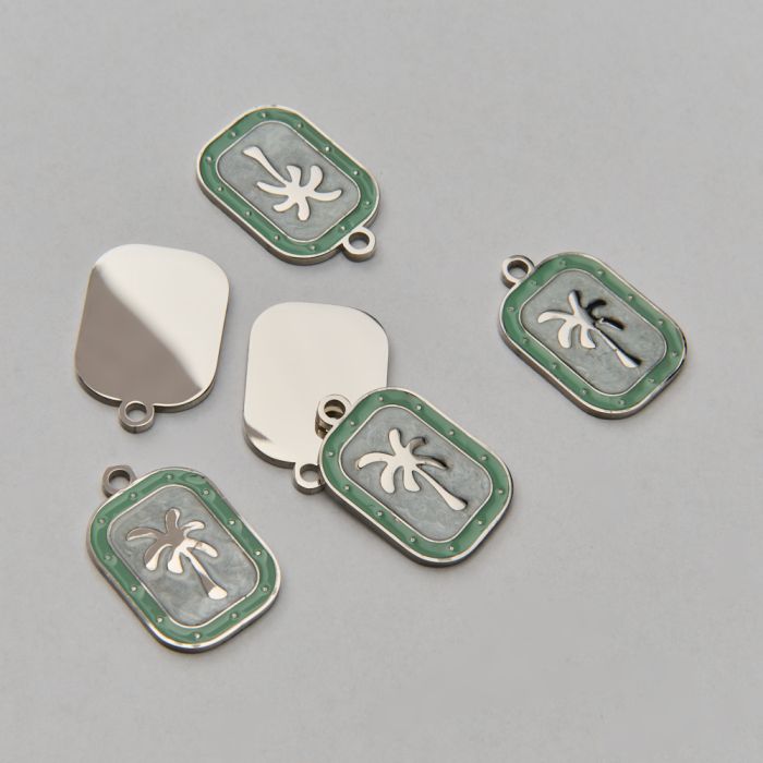 Zawieszka ze stali chirurgicznej emaliowana z palmą w kolorze srebrnym 19,5mm