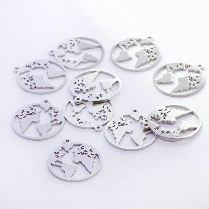 Zawieszka ze stali chirurgicznej globus w kolorze srebrnym 21mm