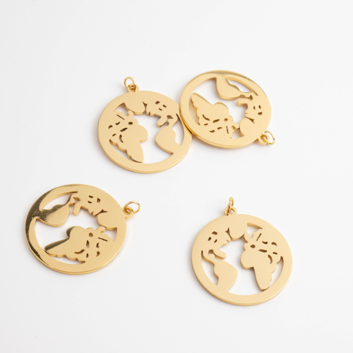 Zawieszka ze stali chirurgicznej globus w kolorze złotym 20,5mmTo trwały element biżuterii lub półfabrykat jubilerski, który dobrze sprawdza się w codziennych realizacjach. W biżuterii handmade stal chirurgiczna 316L jest ceniona za dobry wygląd, odporność na korozję i wygodę codziennego użytkowania.Zawieszka ze stali chirurgicznej 316L to dekoracyjny element, który nadaje biżuterii charakteru i pozwala tworzyć spersonalizowane projekty. Świetnie sprawdza się w naszyjnikach, bransoletkach, kolczykach oraz drobnych charmsach.Forma lub motyw