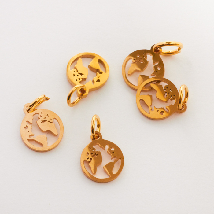 Zawieszka ze stali chirurgicznej globus w kolorze złotym 8,5mm PVDTo trwały element biżuterii lub półfabrykat jubilerski, który dobrze sprawdza się w codziennych realizacjach. Stal chirurgiczna 316L jest ceniona za odporność na korozję i estetyczny wygląd w codziennym użytkowaniu. Wykończenie w kolorze złotym uzyskane metodą PVD.Zawieszka ze stali chirurgicznej 316L to dekoracyjny element, który nadaje biżuterii charakteru i pozwala tworzyć spersonalizowane projekty. Świetnie sprawdza się w naszyjnikach, bransoletkach, kolczykach oraz drobnych charmsach.Forma lub motyw