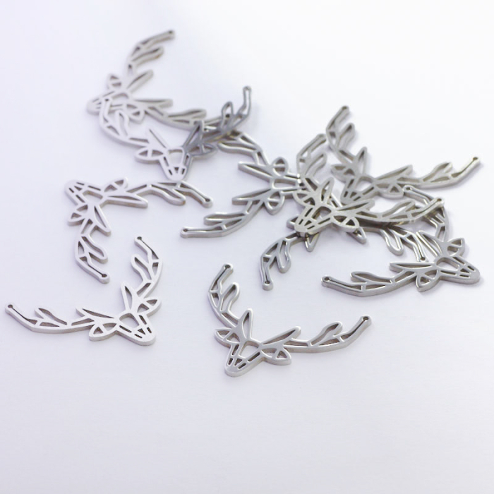 Zawieszka ze stali chirurgicznej głowa jelenia w kolorze srebrnym 24x30mmTo starannie wykonany produkt ze stali chirurgicznej 316L, który dobrze prezentuje się w codziennym użytkowaniu. Stal chirurgiczna 316L dobrze sprawdza się w biżuterii noszonej na co dzień, ponieważ łączy trwałość z estetycznym wykończeniem.Zawieszka ze stali chirurgicznej 316L to dekoracyjny element, który nadaje biżuterii charakteru i pozwala tworzyć spersonalizowane projekty. Świetnie sprawdza się w naszyjnikach, bransoletkach, kolczykach oraz drobnych charmsach.Forma lub motyw