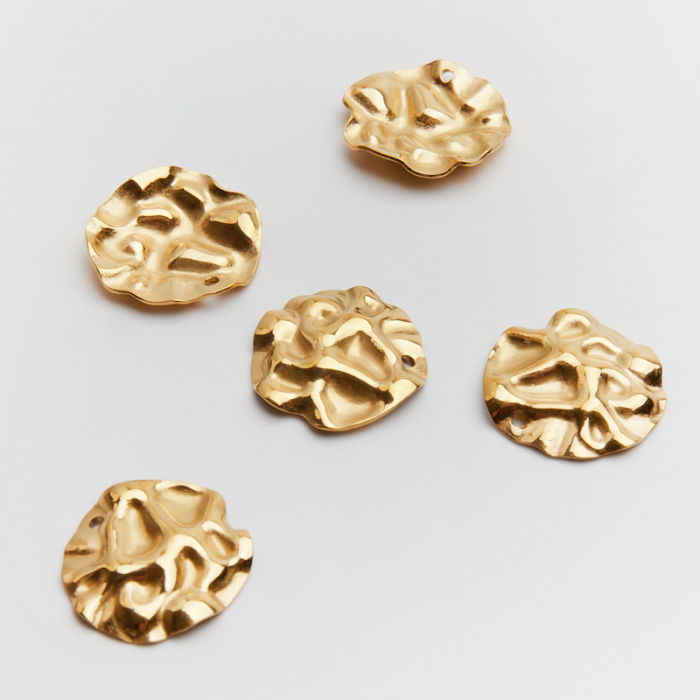 Zawieszka gniecione kółko 18 mm – stal chirurgiczna w kolorze złotym, pozłacana metodą PVD, elegancka i uniwersalnaZawieszka gniecione kółko o wielkości 18 mm wykonana z stal chirurgiczna w kolorze złotym, pozłacana metodą PVD to ponadczasowy element biżuterii handmade. Dzięki swojej formie sprawdzi się zarówno w minimalistycznych projektach, jak i w eleganckich kompletach biżuteryjnych.