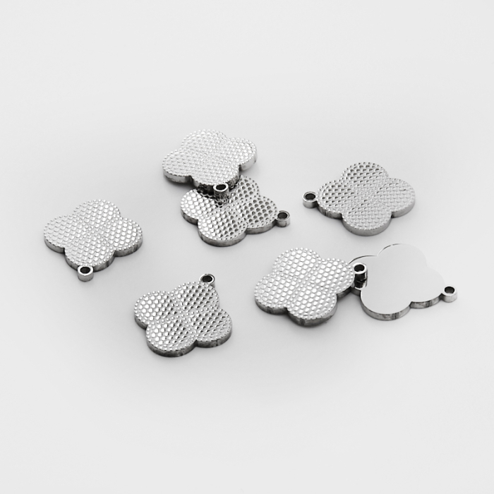 Zawieszka ze stali chirurgicznej grawerowana koniczyna marokańska w kolorze srebrnym 17mmTo trwały element biżuterii lub półfabrykat jubilerski, który dobrze sprawdza się w codziennych realizacjach. Stal chirurgiczna 316L dobrze sprawdza się w biżuterii noszonej na co dzień, ponieważ łączy trwałość z estetycznym wykończeniem.Zawieszka ze stali chirurgicznej 316L to dekoracyjny element, który nadaje biżuterii charakteru i pozwala tworzyć spersonalizowane projekty. Świetnie sprawdza się w naszyjnikach, bransoletkach, kolczykach oraz drobnych charmsach.Forma lub motyw
