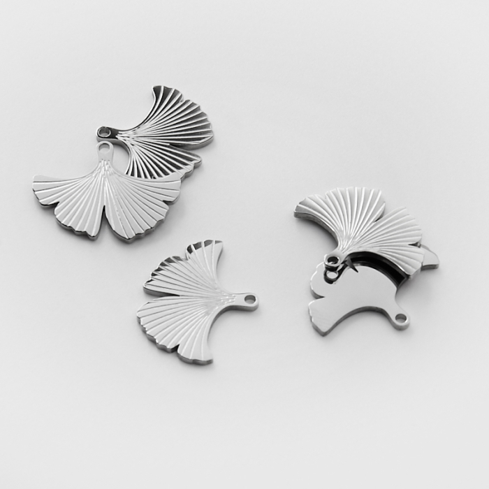 Zawieszka ze stali chirurgicznej grawerowana liść miłorzębu w kolorze srebrnym 13mmTo trwały element biżuterii lub półfabrykat jubilerski, który dobrze sprawdza się w codziennych realizacjach. To materiał chętnie wybierany do biżuterii handmade ze względu na trwałość, estetykę i wygodę użytkowania.Zawieszka ze stali chirurgicznej 316L to dekoracyjny element, który nadaje biżuterii charakteru i pozwala tworzyć spersonalizowane projekty. Świetnie sprawdza się w naszyjnikach, bransoletkach, kolczykach oraz drobnych charmsach.Forma lub motyw