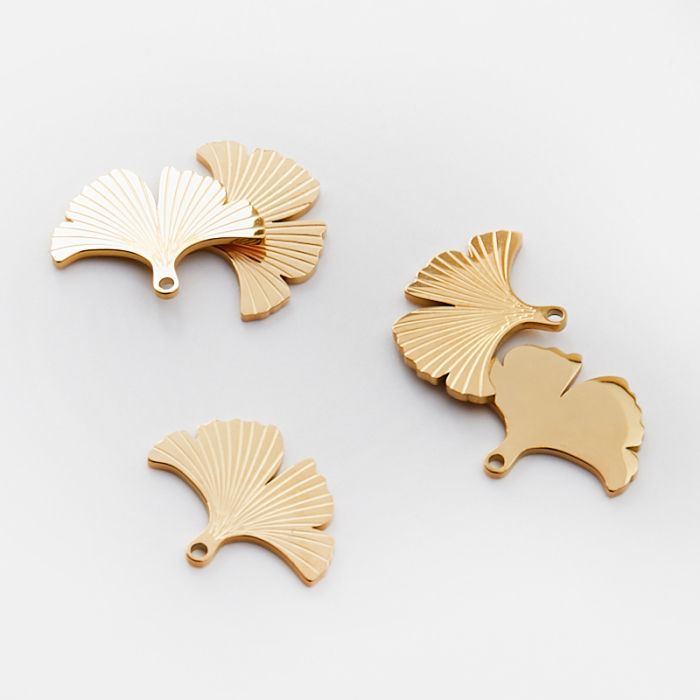 Zawieszka ze stali chirurgicznej grawerowana liść miłorzębu w kolorze złotym 13mm PVDTo estetyczny element biżuteryjny ze stali chirurgicznej 316L, chętnie wybierany do nowoczesnych projektów. Stal chirurgiczna 316L jest ceniona za odporność na korozję i estetyczny wygląd w codziennym użytkowaniu. Wykończenie w kolorze złotym uzyskane metodą PVD.Zawieszka ze stali chirurgicznej 316L to dekoracyjny element, który nadaje biżuterii charakteru i pozwala tworzyć spersonalizowane projekty. Świetnie sprawdza się w naszyjnikach, bransoletkach, kolczykach oraz drobnych charmsach.Forma lub motyw