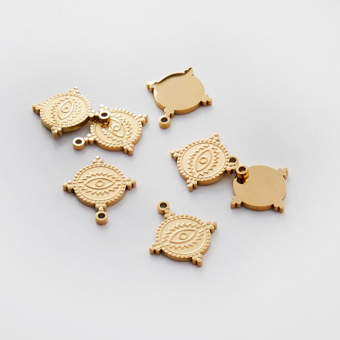 Zawieszka ze stali chirurgicznej grawerowana oko proroka w kolorze złotym 16,5mm PVD