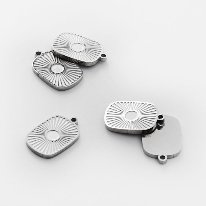 Zawieszka ze stali chirurgicznej grawerowana owal we wzorki w kolorze srebrnym 16mm
