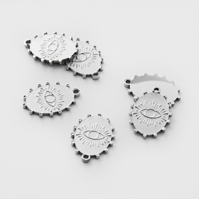 Zawieszka ze stali chirurgicznej grawerowana owal z wypustkami w kolorze srebrnym 18mmTo dopracowany produkt ze stali chirurgicznej 316L, który łączy praktyczność z estetycznym wyglądem. Stal chirurgiczna 316L jest ceniona za odporność na korozję i estetyczny wygląd w codziennym użytkowaniu.Zawieszka ze stali chirurgicznej 316L to dekoracyjny element, który nadaje biżuterii charakteru i pozwala tworzyć spersonalizowane projekty. Świetnie sprawdza się w naszyjnikach, bransoletkach, kolczykach oraz drobnych charmsach.Forma lub motyw