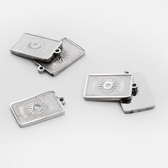 Zawieszka ze stali chirurgicznej grawerowana prostokąt ze słoneczkiem w kolorze srebrnym 17mm