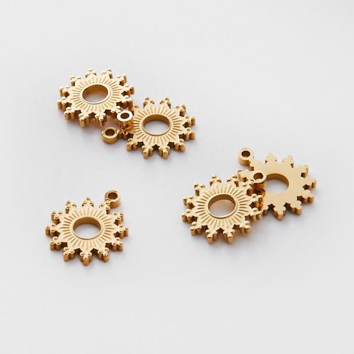 Zawieszka ze stali chirurgicznej grawerowana słoneczko wycięte w kolorze złotym 11,5mm PVD