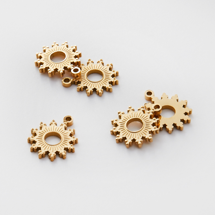 Zawieszka ze stali chirurgicznej grawerowana słoneczko wycięte w kolorze złotym 11,5mm PVDTo dopracowany produkt ze stali szlachetnej, który łączy praktyczność z estetycznym wyglądem. To materiał chętnie wybierany do biżuterii handmade ze względu na trwałość, estetykę i wygodę użytkowania. Wykończenie w kolorze złotym uzyskane metodą PVD.Zawieszka ze stali szlachetnej to dekoracyjny element, który nadaje biżuterii charakteru i pozwala tworzyć spersonalizowane projekty. Świetnie sprawdza się w naszyjnikach, bransoletkach, kolczykach oraz drobnych charmsach.Forma lub motyw