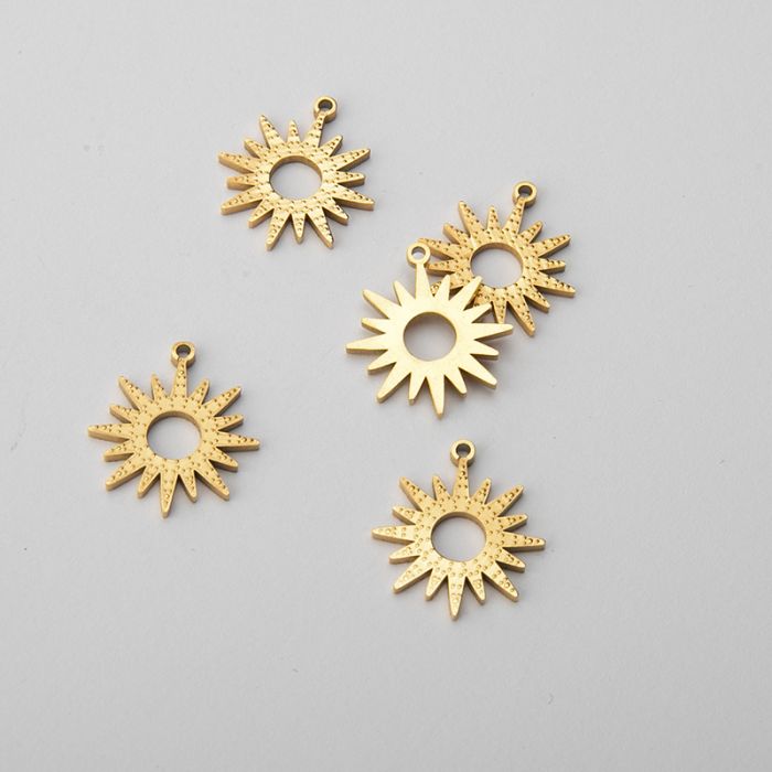 Zawieszka ze stali chirurgicznej grawerowana słoneczko wycięte w kolorze złotym 16,5mm PVD