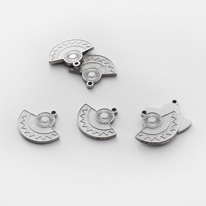 Zawieszka ze stali chirurgicznej grawerowana wachlarz w kolorze srebrnym 13mm
