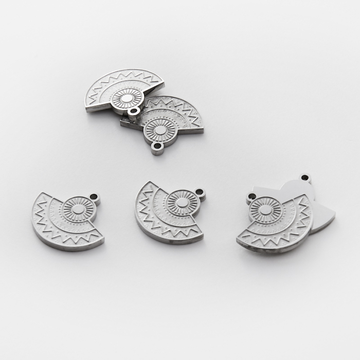 Zawieszka ze stali chirurgicznej grawerowana wachlarz w kolorze srebrnym 13mmTo trwały element biżuterii lub półfabrykat jubilerski, który dobrze sprawdza się w codziennych realizacjach. W biżuterii handmade stal chirurgiczna 316L jest ceniona za dobry wygląd, odporność na korozję i wygodę codziennego użytkowania.Zawieszka ze stali chirurgicznej 316L to dekoracyjny element, który nadaje biżuterii charakteru i pozwala tworzyć spersonalizowane projekty. Świetnie sprawdza się w naszyjnikach, bransoletkach, kolczykach oraz drobnych charmsach.Forma lub motyw