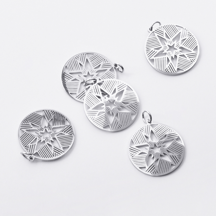Zawieszka ze stali chirurgicznej Gwiazda z promieniami do naszyjników w kolorze srebrnym 22mmTo starannie wykonany produkt ze stali chirurgicznej 316L, który dobrze prezentuje się w codziennym użytkowaniu. Stal chirurgiczna 316L dobrze sprawdza się w biżuterii noszonej na co dzień, ponieważ łączy trwałość z estetycznym wykończeniem.Naszyjnik ze stali chirurgicznej 316L to gotowy element biżuterii lub baza do dalszego personalizowania, w zależności od konstrukcji produktu. Dobrze sprawdza się w codziennym noszeniu i pozwala łatwo dopasować styl projektu do pozostałych dodatków.Rozmiar