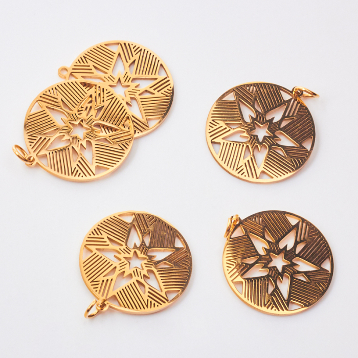 Zawieszka ze stali chirurgicznej Gwiazda z promieniami do naszyjników w kolorze złotym 22mmTo trwały element biżuterii lub półfabrykat jubilerski, który dobrze sprawdza się w codziennych realizacjach. Stal chirurgiczna 316L jest ceniona za odporność na korozję i estetyczny wygląd w codziennym użytkowaniu.Naszyjnik ze stali chirurgicznej 316L to gotowy element biżuterii lub baza do dalszego personalizowania, w zależności od konstrukcji produktu. Dobrze sprawdza się w codziennym noszeniu i pozwala łatwo dopasować styl projektu do pozostałych dodatków.Rozmiar