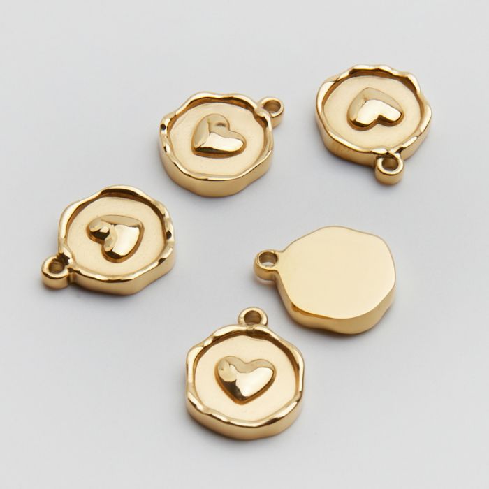 Zawieszka ze stali chirurgicznej heksagon z serduszkiem w kolorze złotym 13mm PVD