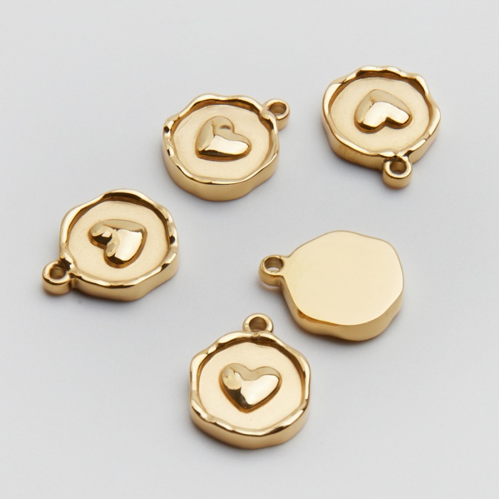 Zawieszka ze stali chirurgicznej heksagon z serduszkiem w kolorze złotym 13mm PVDTo estetyczny element biżuteryjny ze stali chirurgicznej 316L, chętnie wybierany do nowoczesnych projektów. Stal chirurgiczna 316L jest ceniona za odporność na korozję i estetyczny wygląd w codziennym użytkowaniu. Wykończenie w kolorze złotym uzyskane metodą PVD.Zawieszka ze stali chirurgicznej 316L to dekoracyjny element, który nadaje biżuterii charakteru i pozwala tworzyć spersonalizowane projekty. Świetnie sprawdza się w naszyjnikach, bransoletkach, kolczykach oraz drobnych charmsach.Forma lub motyw
