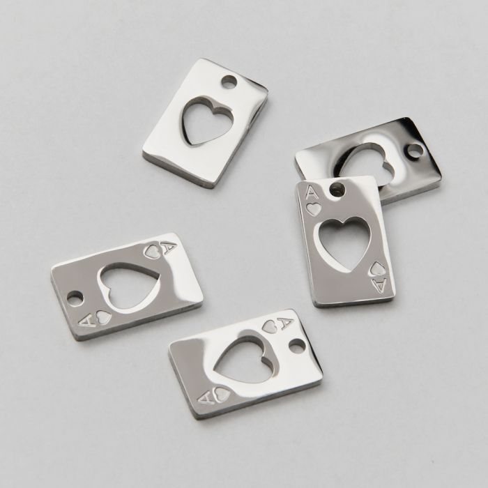 Zawieszka ze stali chirurgicznej karta AS kier w kolorze srebrnym 14mm