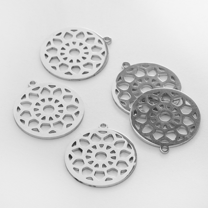 Zawieszka ze stali chirurgicznej kółko ażurowe do naszyjników w kolorze srebrnym 20mmTo estetyczny element biżuteryjny ze stali chirurgicznej 316L, chętnie wybierany do nowoczesnych projektów. W biżuterii handmade stal chirurgiczna 316L jest ceniona za dobry wygląd, odporność na korozję i wygodę codziennego użytkowania.Naszyjnik ze stali chirurgicznej 316L to gotowy element biżuterii lub baza do dalszego personalizowania, w zależności od konstrukcji produktu. Dobrze sprawdza się w codziennym noszeniu i pozwala łatwo dopasować styl projektu do pozostałych dodatków.Rozmiar