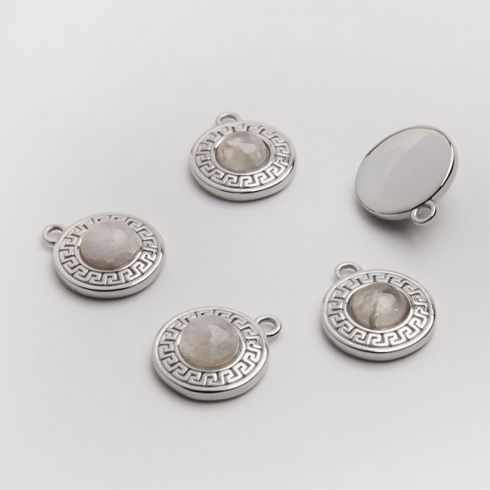 Zawieszka ze stali chirurgicznej kółko greckie kryształem górskim w kolorze srebrnym 19mm