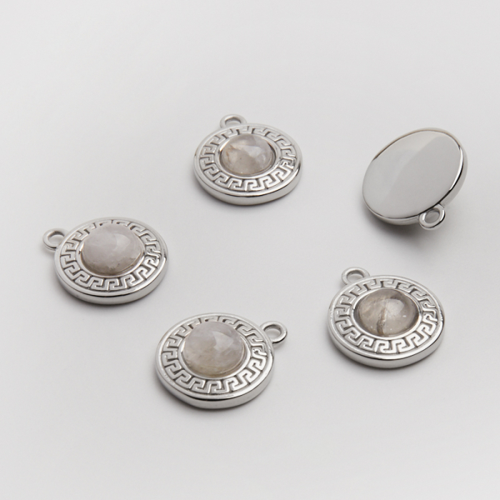 Zawieszka ze stali chirurgicznej kółko greckie kryształem górskim w kolorze srebrnym 19mmTo estetyczny element biżuteryjny ze stali chirurgicznej 316L, chętnie wybierany do nowoczesnych projektów. Stal chirurgiczna 316L dobrze sprawdza się w biżuterii noszonej na co dzień, ponieważ łączy trwałość z estetycznym wykończeniem.Zawieszka ze stali chirurgicznej 316L to dekoracyjny element, który nadaje biżuterii charakteru i pozwala tworzyć spersonalizowane projekty. Świetnie sprawdza się w naszyjnikach, bransoletkach, kolczykach oraz drobnych charmsach.Forma lub motyw