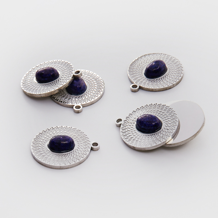 Zawieszka ze stali chirurgicznej kółko nacinane z lapis lazuli w kolorze srebrnym 21mmTo starannie wykonany produkt ze stali chirurgicznej 316L, który dobrze prezentuje się w codziennym użytkowaniu. Stal chirurgiczna 316L dobrze sprawdza się w biżuterii noszonej na co dzień, ponieważ łączy trwałość z estetycznym wykończeniem.Zawieszka ze stali chirurgicznej 316L to dekoracyjny element, który nadaje biżuterii charakteru i pozwala tworzyć spersonalizowane projekty. Świetnie sprawdza się w naszyjnikach, bransoletkach, kolczykach oraz drobnych charmsach.Forma lub motyw