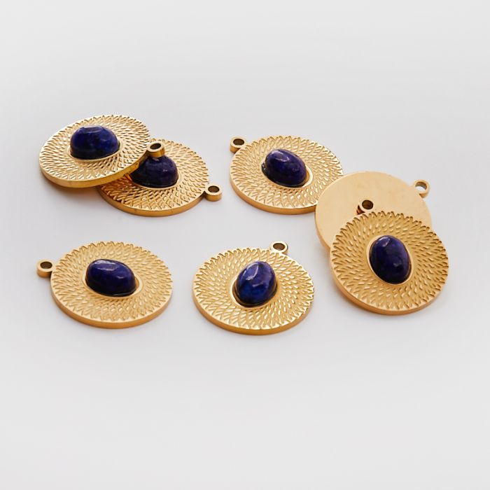 Zawieszka ze stali chirurgicznej kółko nacinane z lapis lazuli w kolorze złotym 21mm PVD