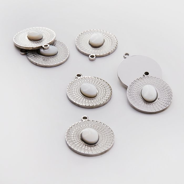 Zawieszka ze stali chirurgicznej kółko nacinane z masą perłową w kolorze srebrnym 21mm