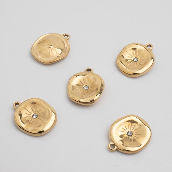Zawieszka ze stali chirurgicznej kółko nieregularne z cyrkonią w kolorze złotym 16,5mm PVD