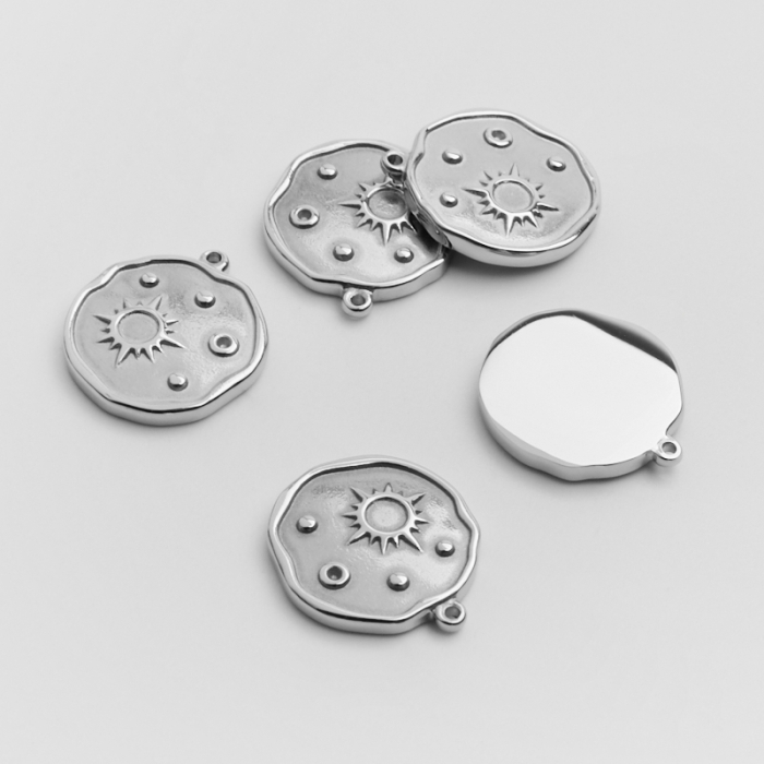 Zawieszka ze stali chirurgicznej kółko nieregularne ze słońcem i planetami w kolorze srebrnym 17mm