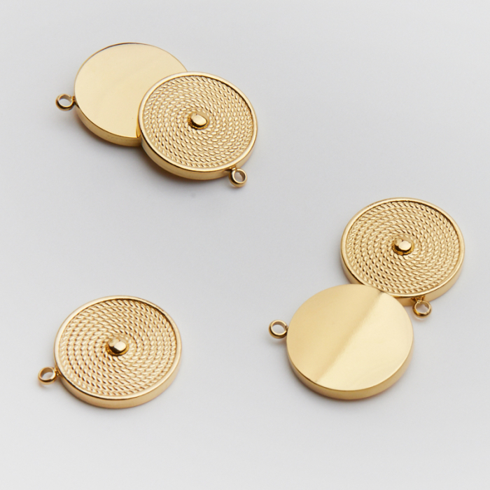 Zawieszka ze stali chirurgicznej kółko ozdobne w kolorze złotym 18mm PVDTo dopracowany produkt ze stali chirurgicznej 316L, który łączy praktyczność z estetycznym wyglądem. Stal chirurgiczna 316L dobrze sprawdza się w biżuterii noszonej na co dzień, ponieważ łączy trwałość z estetycznym wykończeniem. Wykończenie w kolorze złotym uzyskane metodą PVD.Zawieszka ze stali chirurgicznej 316L to dekoracyjny element, który nadaje biżuterii charakteru i pozwala tworzyć spersonalizowane projekty. Świetnie sprawdza się w naszyjnikach, bransoletkach, kolczykach oraz drobnych charmsach.Forma lub motyw