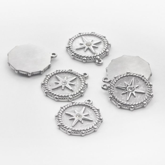 Zawieszka ze stali chirurgicznej kółko ozdobne z różą wiatrów i cyrkonią 22mm