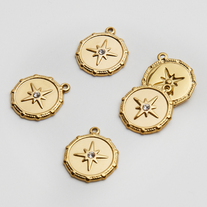 Zawieszka ze stali chirurgicznej kółko ozdobne z różą wiatrów i cyrkonią w kolorze złotym 18,5mm