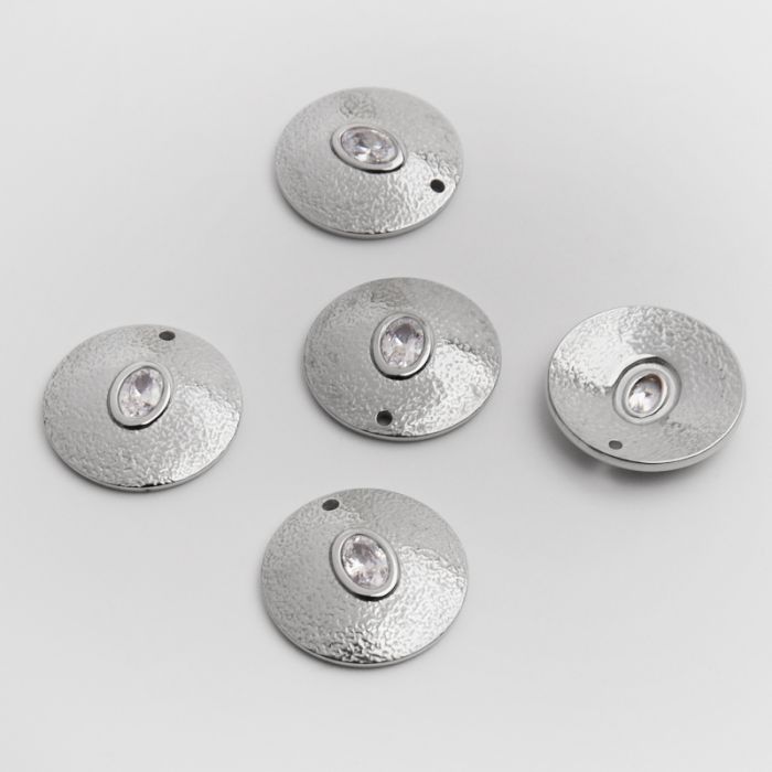 Zawieszka ze stali chirurgicznej kółko wypukłe z białą cyrkonią w kolorze srebrnym 20mm