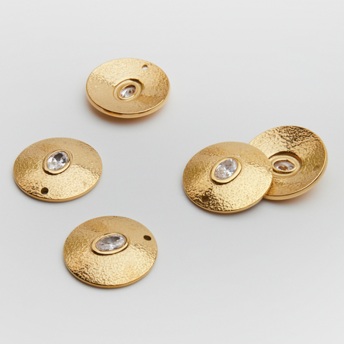 Zawieszka ze stali chirurgicznej kółko wypukłe z białą cyrkonią w kolorze złotym 20mm PVDTo trwały element biżuterii lub półfabrykat jubilerski, który dobrze sprawdza się w codziennych realizacjach. Stal chirurgiczna 316L jest ceniona za odporność na korozję i estetyczny wygląd w codziennym użytkowaniu. Wykończenie w kolorze złotym uzyskane metodą PVD.Zawieszka ze stali chirurgicznej 316L to dekoracyjny element, który nadaje biżuterii charakteru i pozwala tworzyć spersonalizowane projekty. Świetnie sprawdza się w naszyjnikach, bransoletkach, kolczykach oraz drobnych charmsach.Forma lub motyw