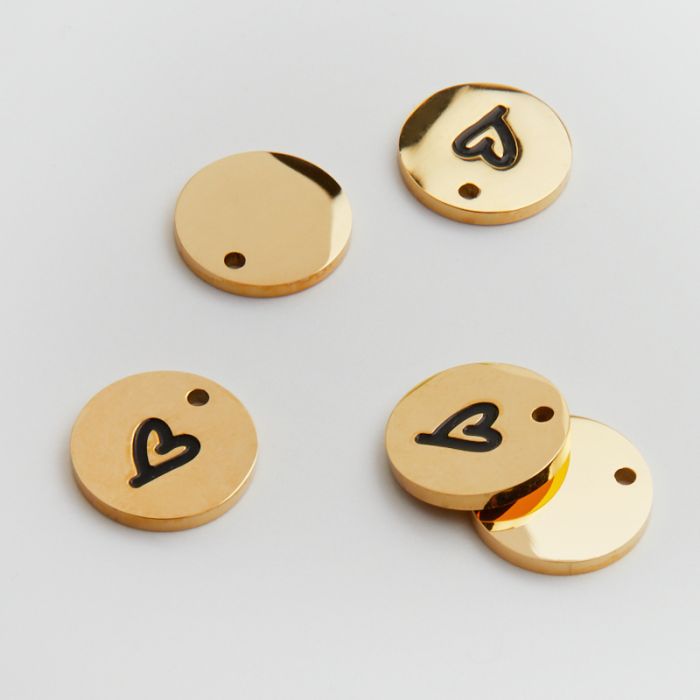 Zawieszka ze stali chirurgicznej kółko z emaliowanym serduszkiem w kolorze złotym 14mm PVD