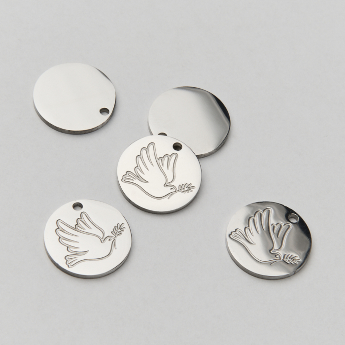 Zawieszka ze stali chirurgicznej kółko z grawerem gołąb pokoju w kolorze srebrnym 15mm