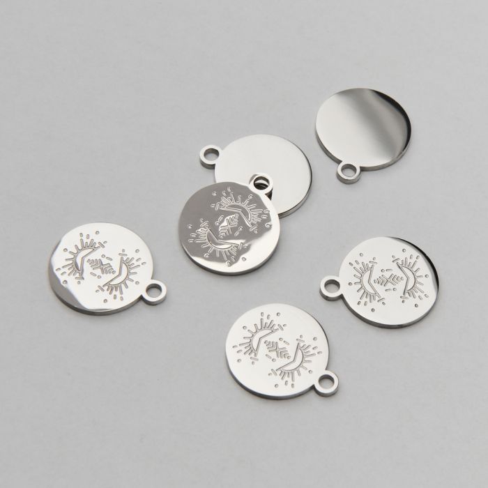 Zawieszka ze stali chirurgicznej kółko z grawerem w stylu boho w kolorze srebrnym 15mm