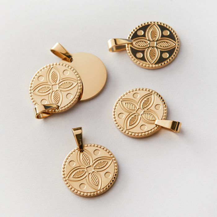 Zawieszka ze stali chirurgicznej kółko z koniczyną marokańską i krawatką w kolorze złotym 16mm PVD
