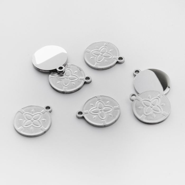 Zawieszka ze stali chirurgicznej kółko z koniczyną marokańską w kolorze srebrnym 18mm